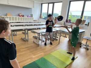 Sport und Bewegung ist einer der Schwerpunkte in der Schule mit PEP. Gemeinsam mit den Kindern wurde die Idee geboren, einen Tag lang im Sportgewand bekleidet die Schule zu besuchen. Dies ließen sich die Kinder der 3. Klassen nicht zweimal sagen. Sie nahmen das Motto ,,ein Tag im Sportgewand“ wortwörtlich und so verbrachten alle SchülerInnen und Lehrerinnen der 3a und 3b einen ganzen Tag lang im Sportgewand. Das Thema Sport zog sich dabei durch den ganzen Schultag und wurde bei vielen abwechslungsreichen Aufgaben aufgegriffen. Mithilfe von bewegtem Lernen wurde der Unterricht aufgelockert und die Kinder hatten große Freude dabei, ihr sportliches Geschick bei unterschiedlichsten Stationen, Bewegungspausen und Tanzeinheiten unter Beweis zu stellen. Ein gelungenes Projekt, an dem alle Beteiligten großen Spaß hatten.